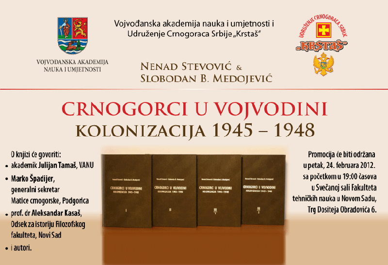 31.03.2011. - Matica crnogorska: Promocija knjige "Crnogorci u Vojvodini - Kolonizacija 1945-1948" |